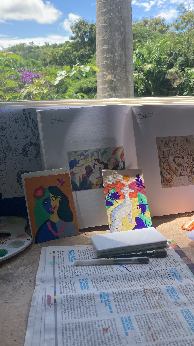My artistic residency at RSJ was an overall positive experience. The possibility to work surrounded by so much nature helped me focus and gather insights. The fazenda has so much space to collaborate or work solo so I enjoyed painting alone and having the chance to get creative input about my work from other fellows on the spot as well as dive into their own practice. A highlight for me was the mix of body work we did; yoga, meditation and walks kept me grounded all through my stay. The whole team was very welcoming, the food delicious and can only recommend Residência São João to other artists looking to develop or write the first stages of a project surrounded by nature.