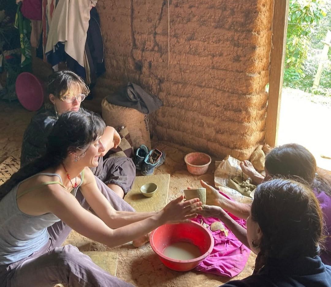 My time at Sachaqa has been transformative, inspiring, turturing and deeply freeing. Living off-grid in the lush jungle of San Roque de Cumbaza offered a fertile opportunity to slow down, reconnect with my self and my creative practice. Experience the spirit of a place where land, human beings and materials are profoundly intertwined. For three weeks I dedicated my self to natural pigments, basket and ceramics. What touched me deeper has been weaving relationships with the local communities, learning from their hands, hearts and ways. Sitting and walking, harvesting and preparing clan and fibers with Petrona and Don Angel. Witness their hands at work, hearing their stories, feeling their connection with Land. These exchanges were rich, humble, full of wisdom, a sweet reminder that crafts and life are rooted in connection and relation. Trina, the heart and spirit of Sachaqa, holds space with her sensitive and intuitive, yet strong nature. Her grounded and laid-back presence, creates an atmosphere where things unfold naturally. Through subtle insight, quiet strenght and a very special way of looking into another artist she is able to support one manifesting visions and projects. Trina's long woven relationship with the local communities offers a fertile ground , allowing for authentic and respectful exchange/meeting. Her are and respect for the people and culture of the area shapes every aspect of the Sachaqa. This place found home in my heart. Un lugar a donde entregarse. I amfilled with reverence and gratitude for the time lived in San Roque and for Sachaqa's holding through the journey. I left soul-nourished.